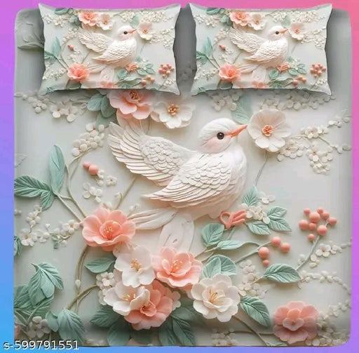 #000 7D Printed Cotton Double Bedsheet with Matching Pillow Covers