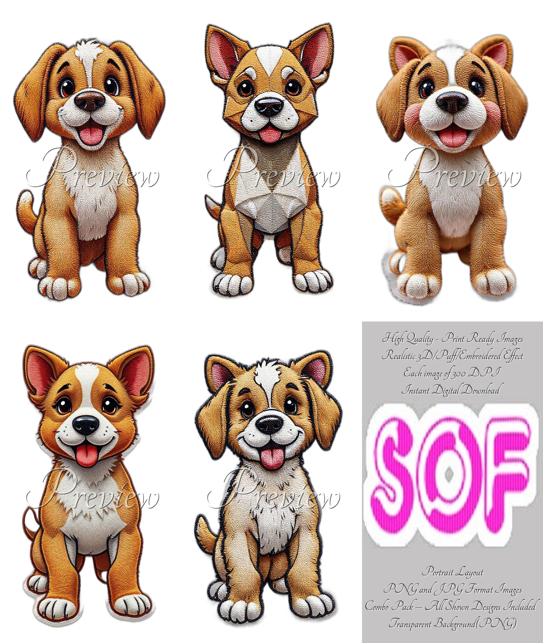#0000 Standing Dog Puppy Theme Pack of 5 Digital Images | 300 DPI Printable Art | Images for Print on Demand